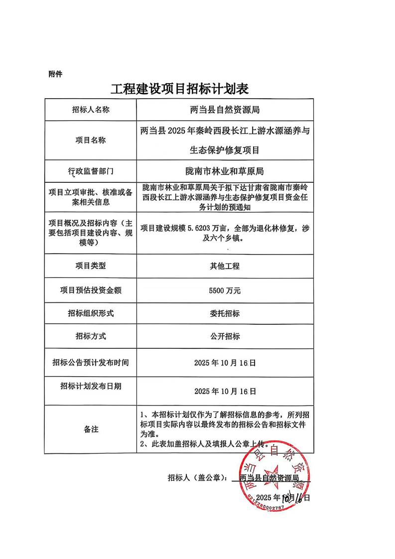 兩當(dāng)縣2025年秦嶺西段長江上游水源涵養(yǎng)與生態(tài)保護修復(fù)項目