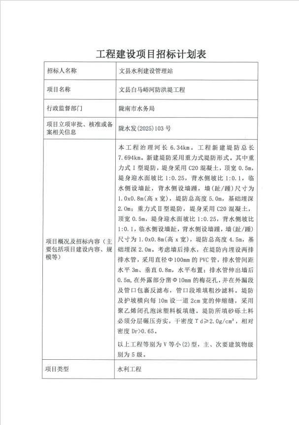 文縣白馬峪河防洪堤工程