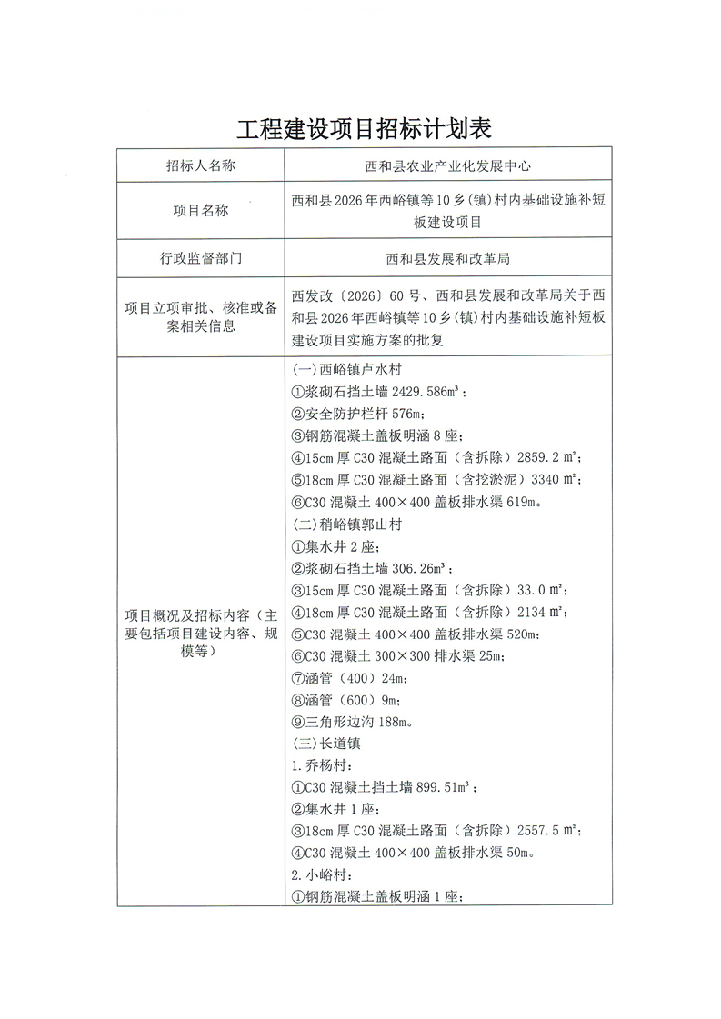 西和縣2026年西峪鎮(zhèn)等10鄉(xiāng)(鎮(zhèn))村內(nèi)基礎(chǔ)設(shè)施補(bǔ)短板建設(shè)項(xiàng)目