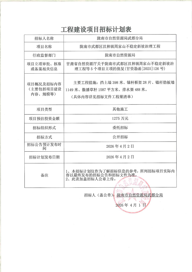 隴南市武都區(qū)漢林鎮(zhèn)周家山不穩(wěn)定斜坡治理工程