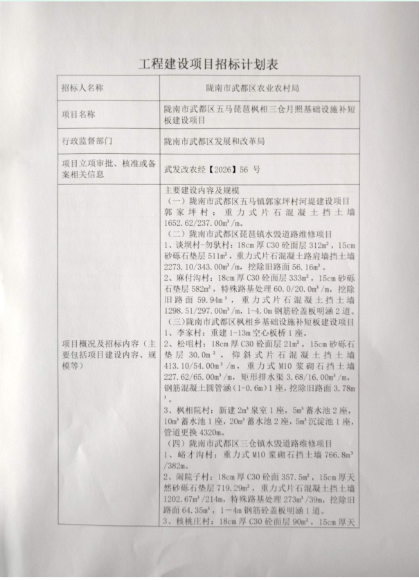 隴南市武都區(qū)五馬琵琶楓相三倉(cāng)月照基礎(chǔ)設(shè)施補(bǔ)短板建設(shè)項(xiàng)目