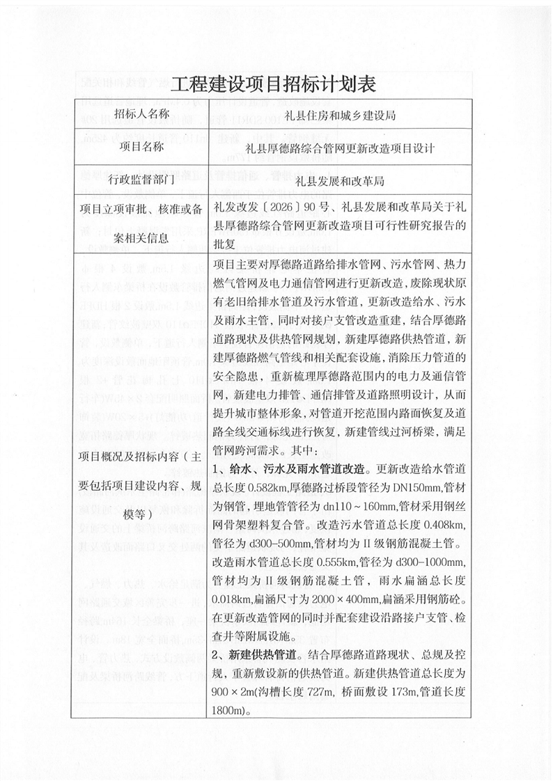 禮縣厚德路綜合管網(wǎng)更新改造項目設計
